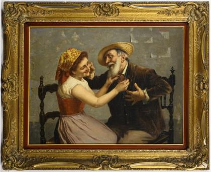 ZERMATI, Jules. Old man and peasant girl.