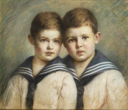 STRASSBERGER, Richard (1868 Leipzig - 1938 Karlsruhe). Double portrait with two boys.