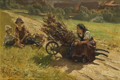 GRÖNVALD, Markus Fredrik Steen (1845 Bergen - 1929 Salzburg). Mother with children.