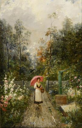 GREENWALD, attributed to Béla Iványi (1867 Som - 1940 Budapest). Young woman in the flower garden.