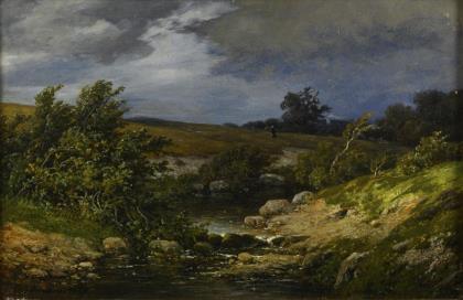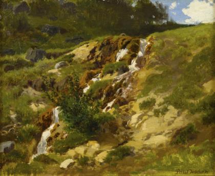 Impressionist late 19th century: Landscape with brook.