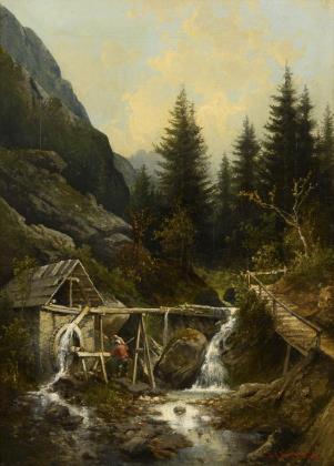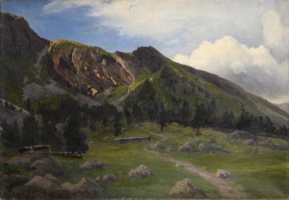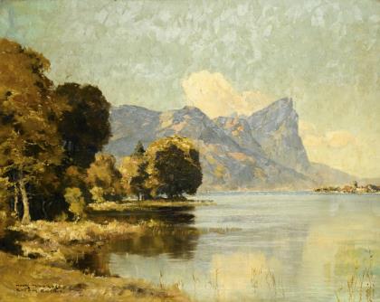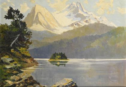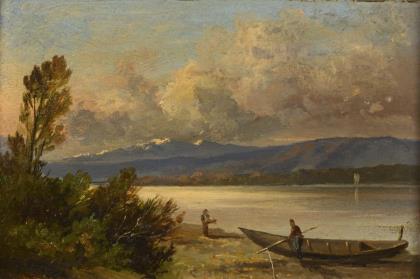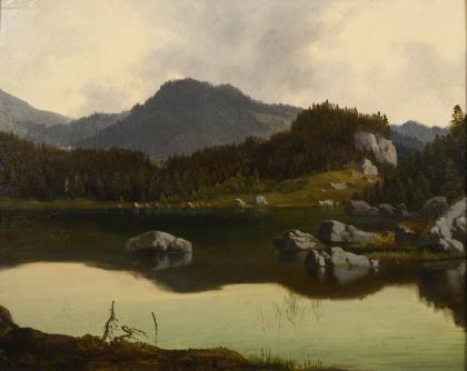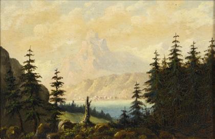 Landscape painter 19th century: Swiss mountain lake.