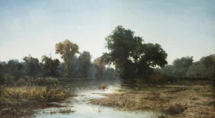 RAU, Otto (* 1856 Dresden). Early spring landscape at dusk.