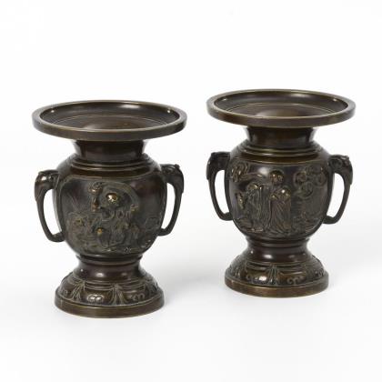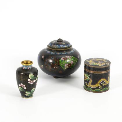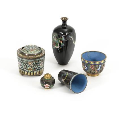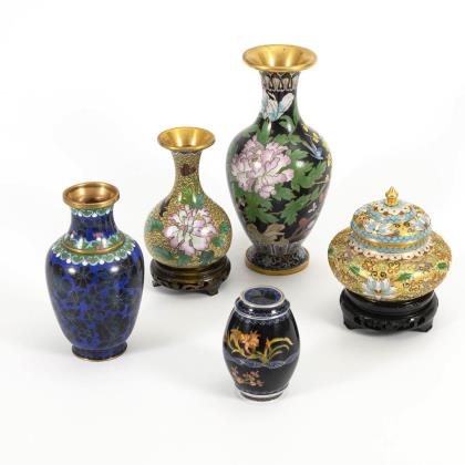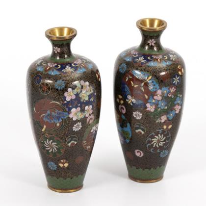 Paar Cloisonné-Vasen mit kleinteiligem Muster.