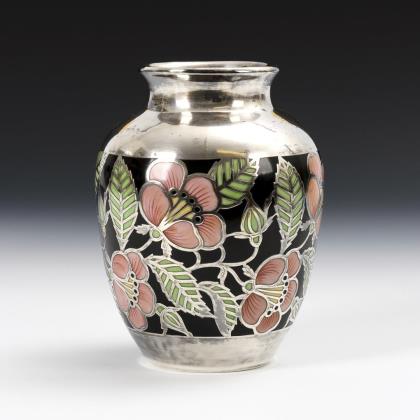 2 Art Nouveau vases with pastel floral motifs.