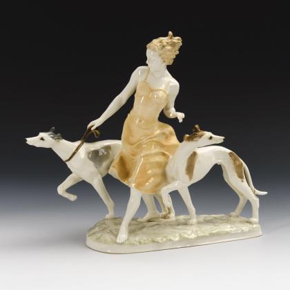 Woman with greyhounds. Hutschenreuther.