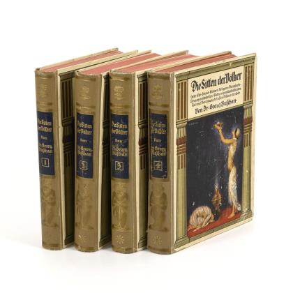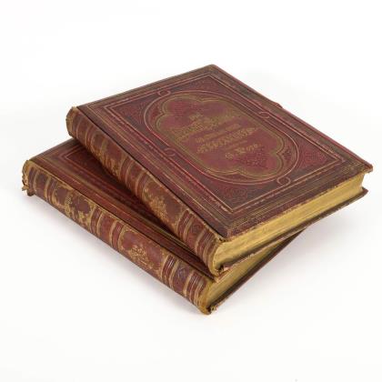 Reich illustrierte Ausgabe mit Holzstichen im Text, ganzseitigen Farblithographien und gefalteten Tafeln. Band 1 ("Zweiter unveränderter Abdruck"). Im einheitlichen Leineneinband