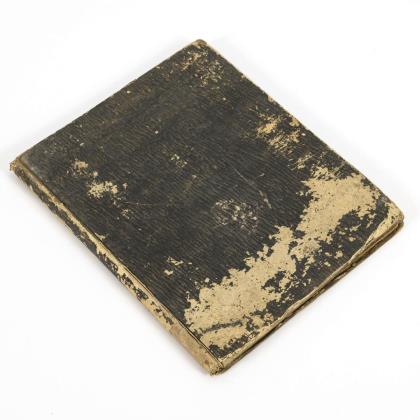Lateinische Handschrift (Textura quadrata) auf Pergament, in Braun, Blau und Rot. Jahreskalendarium und religiöser Text beginnend mit dem "Vater unser" und dem "Ave Maria". Text im Kalendarium mit deutschsprachigen Nachträgen. Kalendarium und Text wohl von verschiedenen Händen geschrieben. (Text wohl von einer Nonne geschrieben. Siehe letzte Zeile: "Pit Got fur die Schreiberin… "), eventuell später zusammengeführt. Ausstattung: einfache Lombarden, Quadratnotation, Fleuronée-Initialen im Psalterium (solide Qualität). Auf den letzten zwei Seiten Nachträge von dritter Hand. Ursprünglich vorhandene Blattweiser, durch Beschneidung entfernt. Buchblock selbst zumindestens im oberen Bereich beschnitten und im 17. Jh. neu in Leder gebunden, Schließen fehlen.