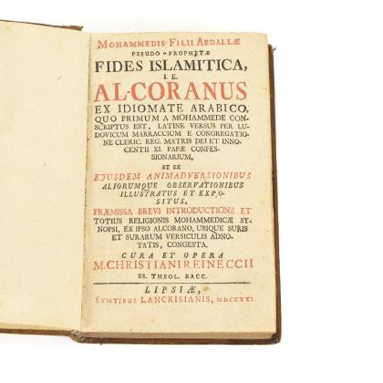 REINECCII, Christiani. "Mohammedis Filii Abdeallae Pseudo Islamitica, i.e. al Coranus ...".