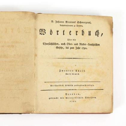 2 Teile in einem Band: 16, 231, 16, 198, (2) Seiten. Alpersbach - Düsternbrock, inklusive Cölln und Cassel. Sowie "Beschreibung des vortrefflichen Naturalienkabinett des Herrn geheimen Kammerraths und Berghauptmanns, Freyherr von Brockenburg in Rudolstadt" (S. 187 - 230). Pappeinband mit Rotschnitt. Einbandpapier etwas lose.