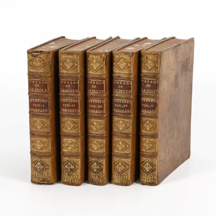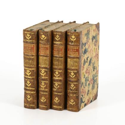 Übersetzt ins Französische von Madame B(elot). Inhalt umfasst die Zeit von 1542 bis 1603. 480; 328; 395 und 391 Seiten. Alle im einheitlichen goldgeprägten Halbledereinband mit Marrmorschnitt