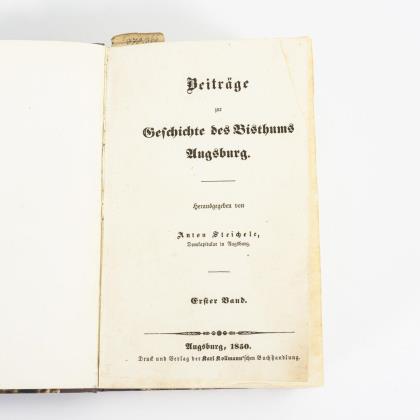 STREICHELE, Anton. "Beiträge zur Geschichte des Bisthums Augsburg" - First volume.