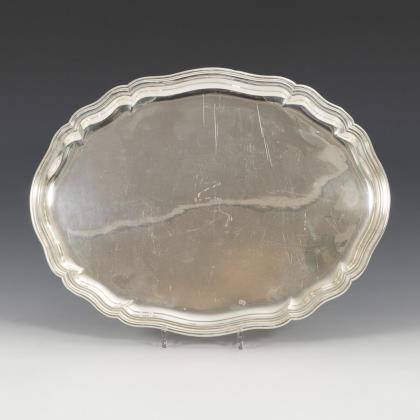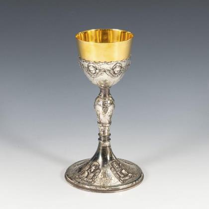 Large silver hunting trophy in the shape of a gulf cup.