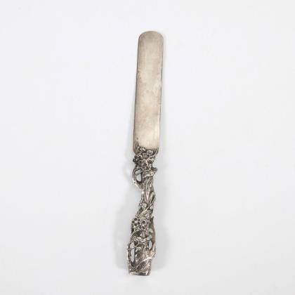 Floral durchbrochener Silberheber mit Holzgriff. Griff minimal locker.