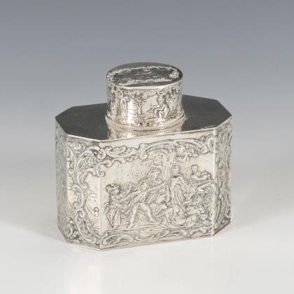 Pair of silver candlesticks in relief. Adam Manns & Sohn, Doernigheim.