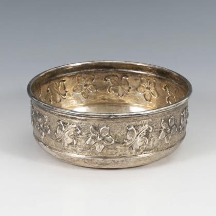 Heavy silver bowl in baroque style.