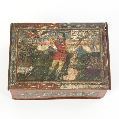 Bismuth box with biblical scene: Abraham sacrifices Isaac.
