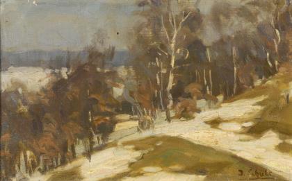 SCHULT, Johann (* 1889 Kirch-Jesar). Forest slope in winter.