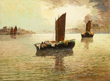ARNOLD-GRABONÉ, Georg (1896 Munich - 1981 Percha). "Harbor exit in the backlight".