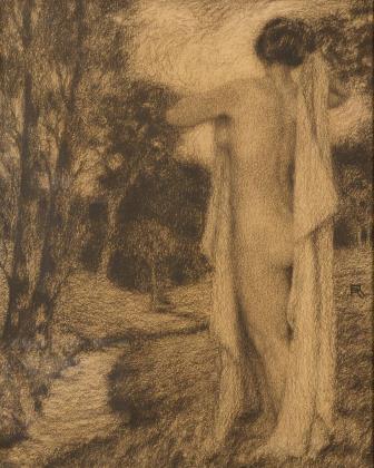 RIEMERSCHMID, Rudolph (1873 Munich - 1953 ibid.). Standing nude in landscape.