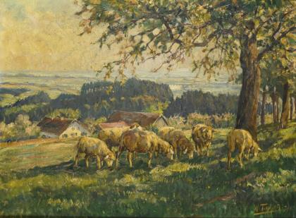 TIEDJEN, Willy (1881 Hamburg - 1950 Munich). Flock of sheep in the sunshine.