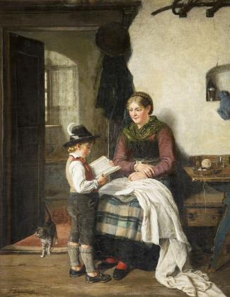 FELGENTREFF, Paul (1854 Potsdam - 1933 Munich). Young mother with little schoolboy.