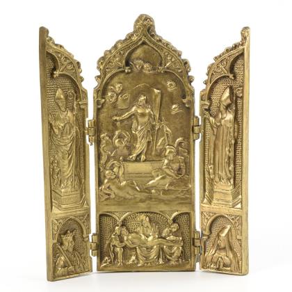 Das Motiv des Königs, der auf einem Esel reitend kommt, findet sich als Sinnbild des gewaltlosen Friedenskönigs, das Volk jubelte ihm zu und streute Palmzweige. Am Palmsonntag (eine Woche vor Ostern) wird des Einzugs gedacht. Geschwärzter Profilrahmen, gold staffiert