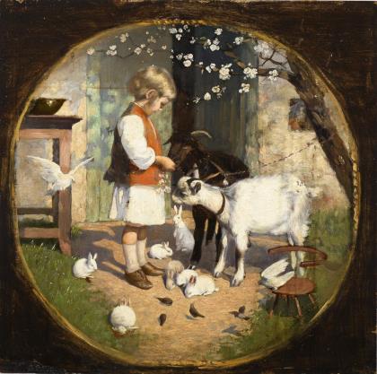 KLINGEMANN, Hugo (1869 Wittmund - 1942 Stuttgart). Child with goats and hares.