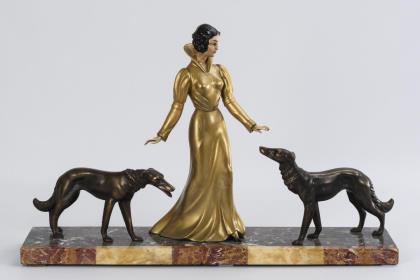 MELANI, Salvatore (after) (1902 - 1934). Art deco group of figures: lady with dogs.