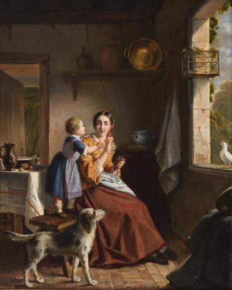 LEGRAND, Alexandre (1822 Paris - 1902 ibid.). Mother with child at the open window.