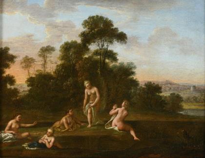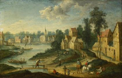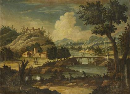 LUDICK, Lodewijk van attributed (1629 - 1697 Amsterdam). Landscape with travel company.