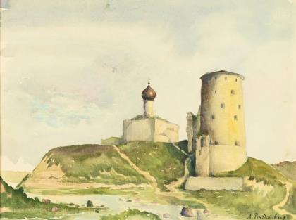 ROMODANOVSKAYA, Antonia Alexeyevna (1906 - 1985). Sunny landscape with castle.