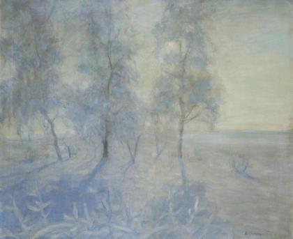 RUSSIAN PAINTER 20TH CENTURY. Snowy landscape with birch trees.
