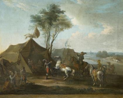BLOEMEN, Pieter van attributed (1657 Antwerp - 1720 Antwerp). Lively activity in the tent camp.