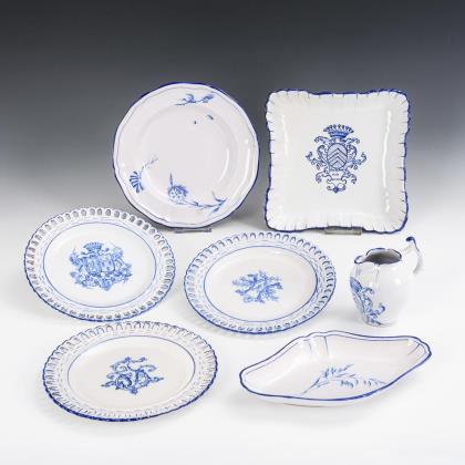 7 Fayence-Service-Teile. Emile Gallé / Faiencerie Saint Clément.