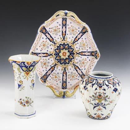 2 faience roller jugs.
