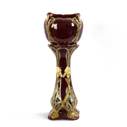 Art Nouveau flower column and planter with lily decor.