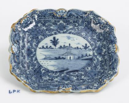 Small Barocke Delfter Fayence-Platte. The Porceleyne Lampetkan, 1637-1811.