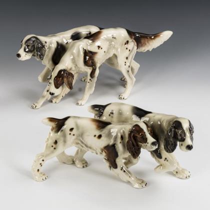 2 hunting dog groups. Keramos, Viennese art ceramics.