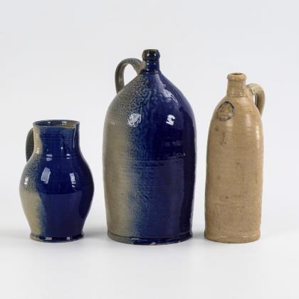 2 Blauschürzenkrüge und 1 Wasserflasche