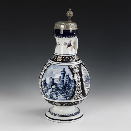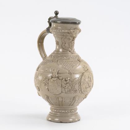 Wilhelminian relief jug with pewter lid.