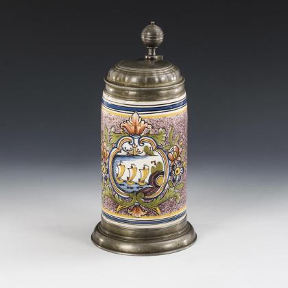 Thuringian faience roller jug with sailing boats.