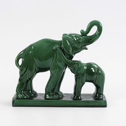 Art deco animal group: elephant cow and calf. Faiencerie Saint Clément.