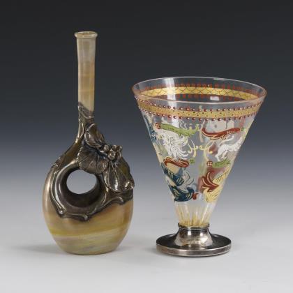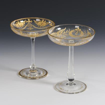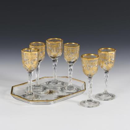 Art Nouveau liqueur glass and intermediate gold cup.