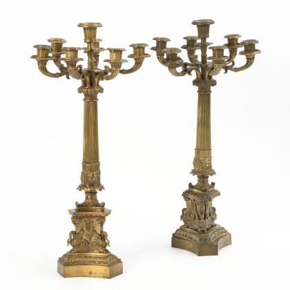 Pair of large 7-light girandoles in Empire style.