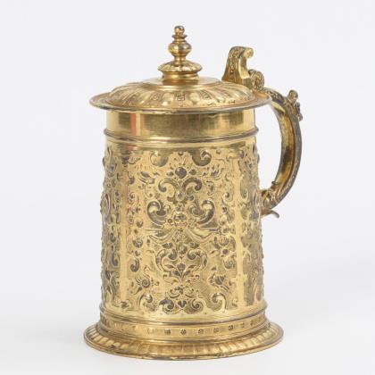 Small gilded relief jug in Renaissance style. Württemberg metalware factory.