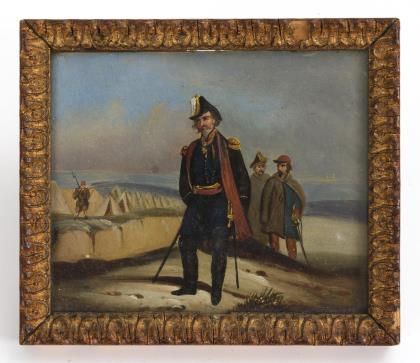 Miniature with military scene: Napoleon III in the field camp.