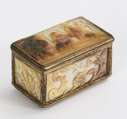 Carved mother-of-pearl tabatiere.