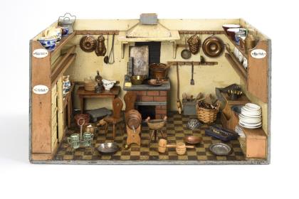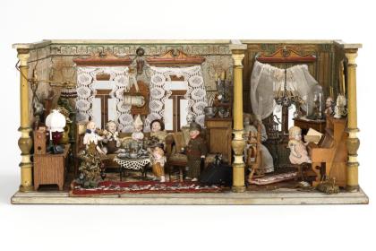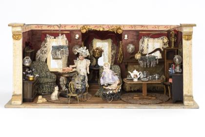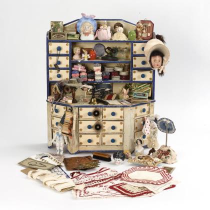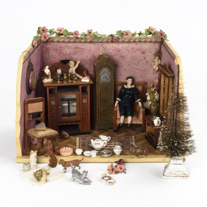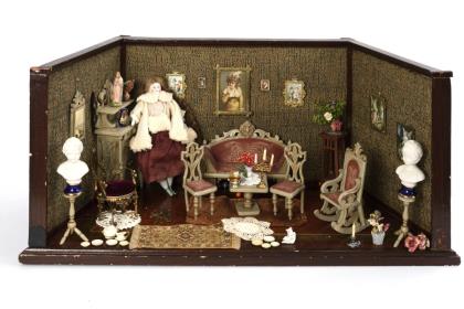 Dollhouse doll and small collection showcase.