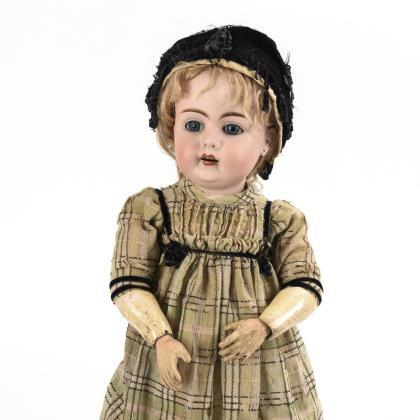 Porcelain head doll with black velvet coat. Simon & Halbig / Franz Schmidt.